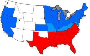 Mapa států USA - červené státy - Konfederace
